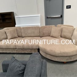 125” Deep Seating Comfortable Couch, Sectional, Large Sectional, Corduroy Sectional, Camel Beige Sectional, Brown Sectional With Round Chaise, Sofa$549Santa Ana, CA