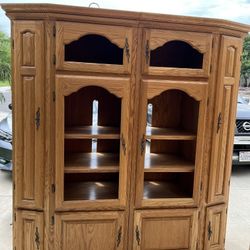 SAMSUNG TV 75 INCHES WITH SWIVEL WALL MOUNT, OAK ENTERTAINMENT CENTER WITH ADJUSTABLE SHELVES,LIGHTS ABOVE,GLASS DOORS,STORAGE CABINETS AT BOTTOM,$1,200Fontana, CA