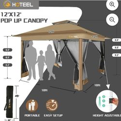12'x12' HOME Outdoor Pop-up Patio Gazebo with Expansion Bolts, Heavy Duty Party Tent & Shelter with Double Roofs, Mosquito Nettings and PrivaScreen$149Pomona, CA