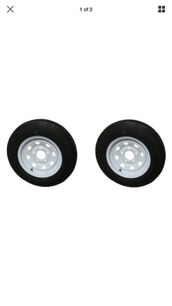 Two Carlisle made in usa Trailer Tires On Rims 4.80-12 5Lug on 4.5 r 4 lugs on 4 Wheel White Spoke$83San Bernardino, CA