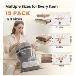 Vacuum Storage Bags for Clothes, Compression Space Saving Storage Bags w/Hand Pump, Reusable, 15pcs$20Fontana, CA
