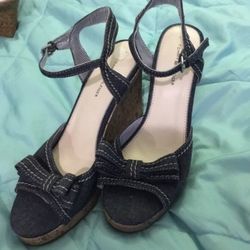 Coach Lynda Leather denim Ankle Strap Wedge Sandal$50Bloomington, CA