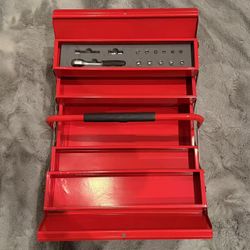 New In Box Bulldog Brand Expandable Folding Storage Tool Box Including 14 Pcs Dive Socket Wrench Set $25Covina, CA