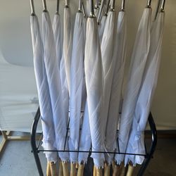 Large set 19 white, long handle UMBRELLAS. For event planner, offices. 40” wide with rolling cart.$65Brea, CA