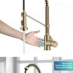 KRAUS Bolden Single Handle Touchless Sensor Commercial Style Pull Down Kitchen Faucet in Brushed Brass$300Fountain Valley, CA