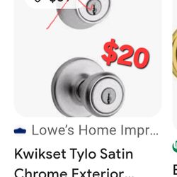 Kwikset Tylo Satin Chrome Keyed Entry Door Knob. This product is widely available from various retailers.