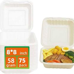 Plastic Food Containers (white), 75 Pack, 8x8, To Go Box, Heavy Duty, Microwave and Refridgerator Safe, Anti-slip, Thick and Durable, for To Go and Re$28City Of Industry, CA