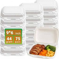 Disposable Food Containers, To Go Box, White, 9x6x3 Inch, 75 Pack, Heavy Duty, Microwave Safe, Leak Proof, For Restaurant, Takeout, Food Truck, PP206$25City Of Industry, CA