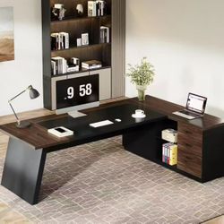 55'' Farmhouse Executive Desk with Drawers, Computer Desk with File Cabinet and Side Bookshelf, Writing Gaming Desk with Monitor Stand & Charging Stat$125Ontario, CA