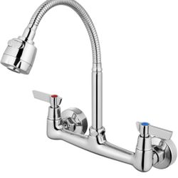 Airuida Chrome Polish Wall Mount Kitchen Sink Faucet 8 Inch Center Unility Faucet Wall Mounted Double Lever Handles Commercial Faucet with 360 Degree $50Ontario, CA