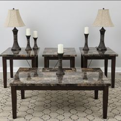 Dark Wood & Polished Stone Looking Living Room Set | Matching Tables + Lamps | Delivery Available $225Los Angeles, CA