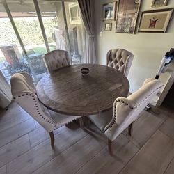 Round Wood Dining Table with 4 Upholstered Chairs – $250 OBO$250Fullerton, CA
