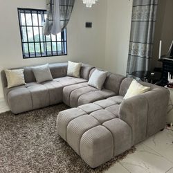 Stylish ‼️Sectional sofa with ottoman black fur-like jumbo Corduroy$525Downey, CA