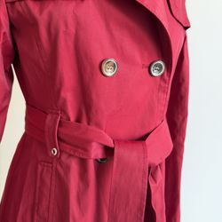 Worn One Time Via Spiga Red Mid length Trench Coat Jacket Small Double Breasted$49Los Angeles, CA