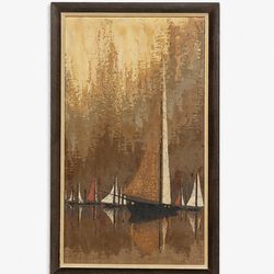 Jacques Henri Guyot French Mid-Century Modern Harbor Scene Oil Painting w/ Sailboats, c.1960's - Delivery Available$450Los Angeles, CA