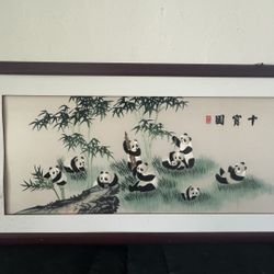 Vintage Chinese Silk Embroidery - "Ten Treasures" Panda Art$100Los Angeles, CA