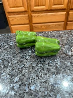 Vintage Ceramic Green Bell Peppers Pair Of Salt And Pepper Shakers. Size approximately 2 inches tall and 2 3/4 inches long. Preowned the bottom has$15Artesia, CA