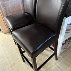 For sale: Set of two bar stools. Dark brown faux leather with dark wood legs.$25Fullerton, CA