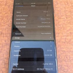 Apple iPhone 7 Plus in the black finish. Carrier AT&T Only. Cloud Unlocked.Kept In Case Since Purchased Clean$60Bellflower, CA