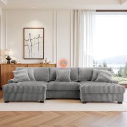 Stylish ‼️ Sectional Sofa With Ottoman Black Fur-Like Jumbo Corduroy$529Whittier, CA