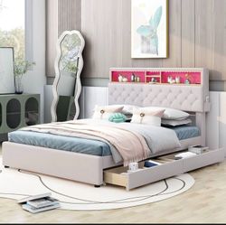 NEW Beige Queen Linen Platform Bed with Storage Headboard, LED & USB Charging$240Arcadia, CA