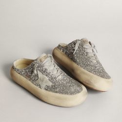 Golden Goose Women's Space-Star Sabot in Glitter with Ice-gray Star and Tab $300West Hollywood, CA