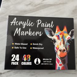 48 Colors Acrylic Paint Markers with 24 Dual-Color Brush Tips, Double Tips Acrylic Paint Pens for Rocks, Eggs, Wood, Rock, Canvas, Plastic, Glass, Cer$6Los Angeles, CA