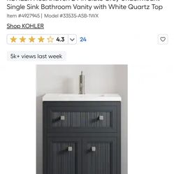 New in box KOHLER Hearthaven 24-in Slate Grey Undermount Single Sink Bathroom Vanity with White Quar$279Fair Oaks, CA