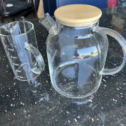 Glass Teapot with Wooden Lid and Measuring Cup$15Rancho Cordova, CA