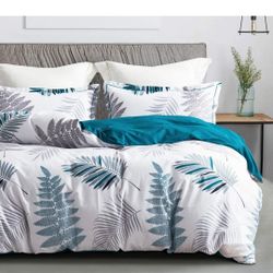 SLEEPBELLA Comforter Queen Size, 600 Thread Count Cotton Blue Floral with Khaki & Grey Leaves Pattern White Reversible Comforter Set,Down Alternative $60Rancho Cordova, CA