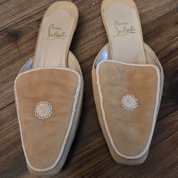 Louboutin Pale Biege Suede Mules Accented top coverd heels.$125Roseville, CA