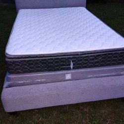 QUEEN SIZE MATTRESS SET WITH GRAY CLOTH COVERED BED FRAME$300Sacramento, CA