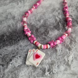 Pink Beaded Necklace w/ Playing Card Heart Charm 💖♠️$14West Linda, CA