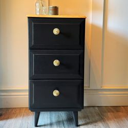 Refinished Black 3-Drawer Chest w/ Gold Knobs & Wood Top – Modern MCM Style$145Placerville, CA