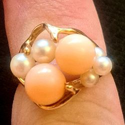 14k Gold Ring With Pink Coral And Pearls - Size 5.5$365Rancho Cordova, CA