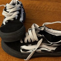 Little Boys Black Vans Silver Flames Size 12 Excellent Condition $25Rancho Cordova, CA