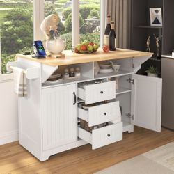 Newly Assembled 56" Large Kitchen Island with 2 Drop Leafs,Rolling Kitchen Cart on 5 Wheels W/Power Outlet & 3 Drawers,Folding Storage Dining Table$195Whittier, CA