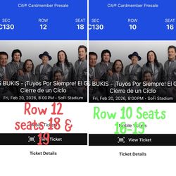 2 BANDA MS CONCERT TIX FOR 02/14/2026$520Los Angeles, CA