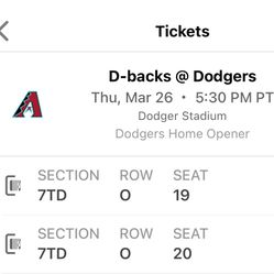 DODGERS OPENING DAY Tickets $595Glendora, CA
