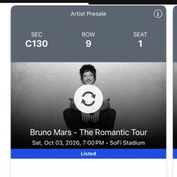Bruno Mars - The Romantic Tour - Floor Seats$1,500Anaheim, CA