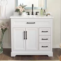 💥FINAL CLEARANC 50% OFF🔥Cream/Off White Wood Vanity Cabinet Base 36” Bathroom Storage Furniture$101Chino Hills, CA