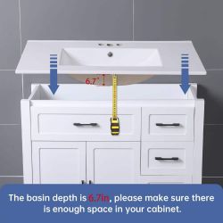 36 in. W x 18.3 in. D Ceramic Rectangular Vanity Top in White, Square Corner Basin, 4 in. Faucet Hole Predrilled 90E-3$50Santa Fe Springs, CA