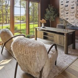Brand New Gorgeous accent chair upholstered in a faux Mongolian shearling fabric with solid parawood$2,499Beverly Hills, CA