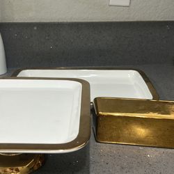 Gold servingware Set - Tray, Cake Stand And Butter Dish $35Tustin, CA