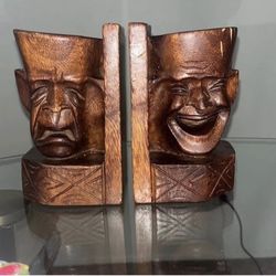 HAND CARVED VINTAGE COMEDY AND TRAGEDY MASK WOODEN BOOKENDS MID CENTURY$50Artesia, CA