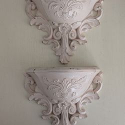 Gorgeous Set Of Vintage Blush Pink Wall Pocket Planters(2)~French Rococo Raised Floral Designs$40Placentia, CA