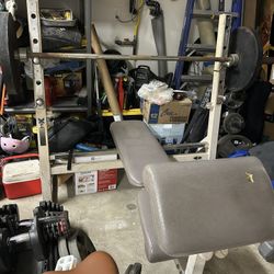 Squat Rack Bench Press + Bar + 45 Lb Weights Plates$180Santa Ana, CA