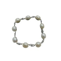 14K White Gold Diamond & Pearl Bracelet Natural Sontes 8" Length$2,499Hawthorne, CA