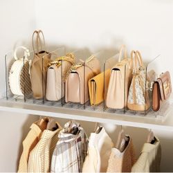 6 Pack Stackable Bag & Purse Organizer for Closet Acrylic Shelf Dividers for Closet Organization, Clear Handbag Purse Storage Organizer Divider$35Carson, CA
