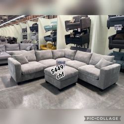 Gray Corduroy Sectional Sofa With Ottoman $449Downey, CA